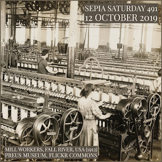 Our theme image this week features mill workers in America in the early years of the twentieth century, and it is an image that has a very personal connection for me. Whether you, like me, have mill workers in your family tree or not, the fabric of our theme can easily stretch to encompass any aspect of the world of work. Or machines, or fabrics, or .... whatever your imagination wants to do with it. Just post a post featuring an old image on or around Saturday 12 October 2019 and add a link to the list below.