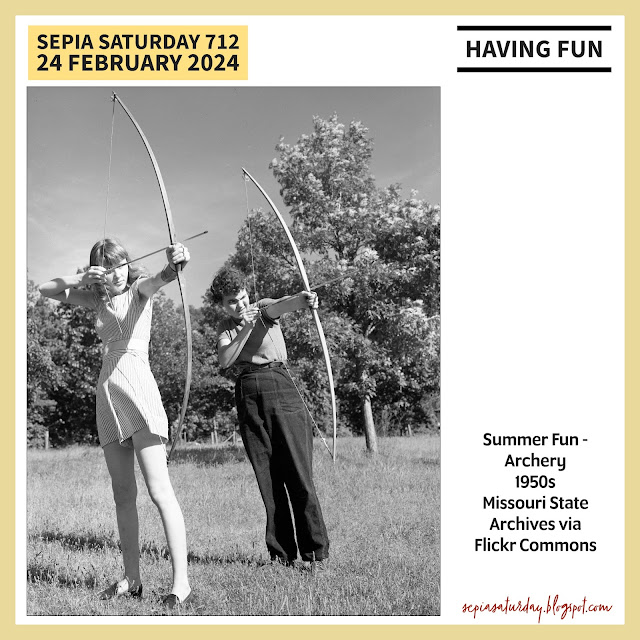 I shot an arrow in the air / it fell to earth .... on Sepia Saturday in Missouri in the 1950s. Wherever you shoot your arrow, enjoy it because this is the last week that we will be having fun. As from next week we are into March and March means "Going To Work" because that will be our monthly theme. Before we get into that, this is your last chance to enjoy yourself in whatever way takes your fancy. Just picture it, post it, and share it on or around Saturday 24th February 2024 and add a link to the list below. Try not to think too much about the work to come, but if you must ... have a quick preview.